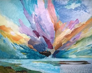 2022Acrylverf gebruikt in vlakke vormen met als contrast het vallende water in gemengde toetsen